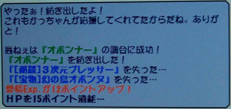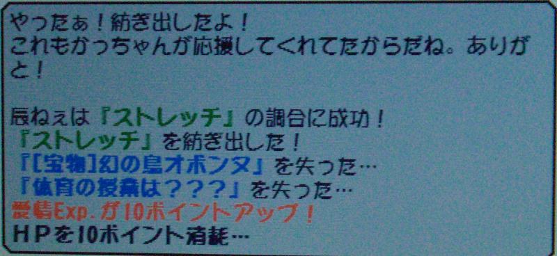 今回は「のんびりとした時間」と「泳ぎの特訓」を調合、難易度は64とちょっと難しいかな?