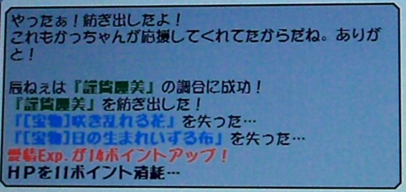 調合でできたのが「[宝物]日の生まれいずる布」でした