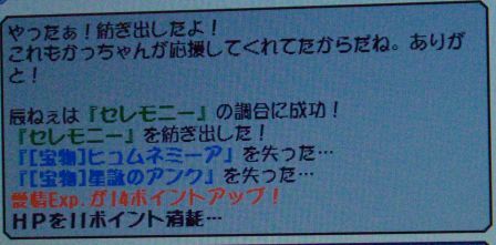 難易度は0、総合100.5なので調合しました(いちばん簡単なので失敗することはまずありませんが…